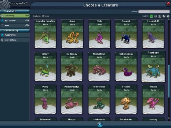 Asi se muestra la sporepedia dentro del juego