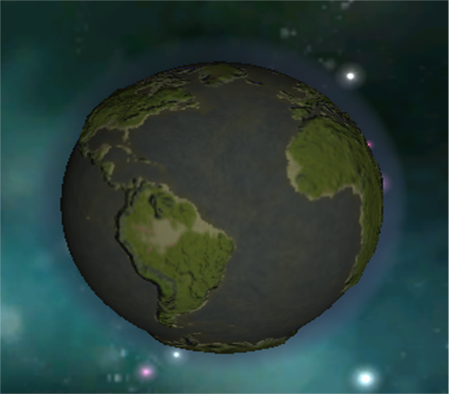 The unique factor about the Earth that its terrain is deliberately shaped like real-life Earth's, albeit the proportions of Earth is small, with many small countries such as the United Kingdom shown as being the size of an average spaceship. Regardless, the Earth systematically functions like any planet throughout the game.