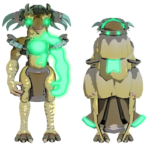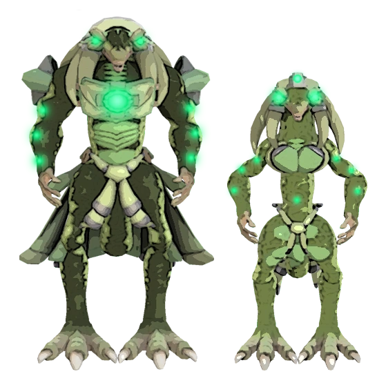 Biologically, Civatrons exhibit key traits that distinguish them from their Krassio kin. Webbed membranes between their fingers enhance aquatic agility, allowing them to swim with fluid precision in the underwater environments of their homeworld. A broad, paddle-like tail acts as both a stabilizer and a propulsion mechanism in water. On land, their dense skeletal structure and high muscle mass grant them exceptional strength and endurance, making them formidable opponents in both close-quarters combat and drawn-out campaigns.