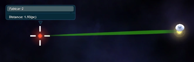 The parsec (symbol: pc) is a unit of length used to measure interstellar distances in the Space Stage. The player's galactic coordinates are also given as angle in degrees to an arbitrary axis along the galactic plane and distance in parsecs to the Galactic Core. The player's spaceship is limited to travelling within a maximum distance in parsecs that the Interstellar Drive can cover in one jump: level 1 (3 pc), level 2 (5 pc), level 3 (8 pc), level 4 (12 pc) and level 5 (20 pc).
