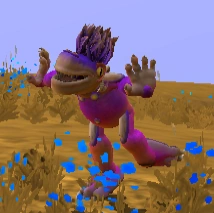 Level 5 Pose is strongest and most sociable. It is made up of a jump with arms up and hand spread, while legs are splayed outward. Once the creature hits the ground, a huge spray of petals/leaves are thrown out of the hands to float down over the creature. This pose is the longest pose in time.